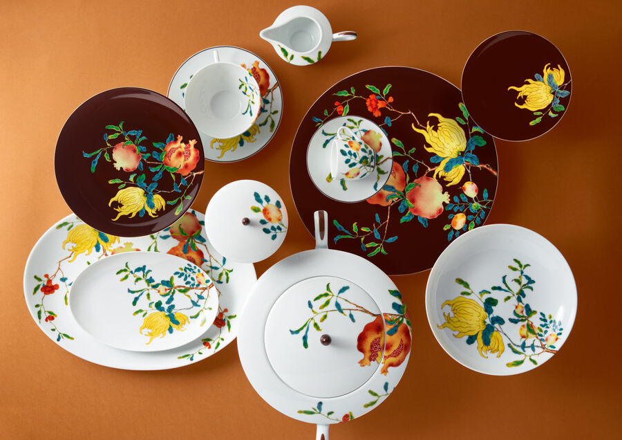 What a wonderful way to celebrate a harmonious family gathering with our new Harmonia collection. Inspired by the golden era of the Chinese Emperor Qianlong in the 18th century, this decoration consisting of the three fruits of abundance, is a representative of the great wealth of porcelain from this period, is exhibited at the National Museum of Asian Arts - Guimet, which enthusiastically welcomed this project, re-edited by Maison Raynaud. The new marron/brown color pieces tone have just been added recently to the collection, bringing a nice balance and diversity to the palette of Harmonia.