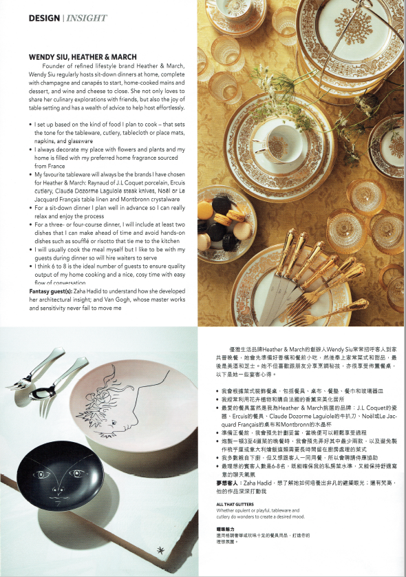 CHAMPIONING THE "FRENCH ART OF LIVING" IN HONG KONG IS THE MISSION FOR WENDY SIU, PRESIDENT AND FOUNDER OF HEATHER & MARCH