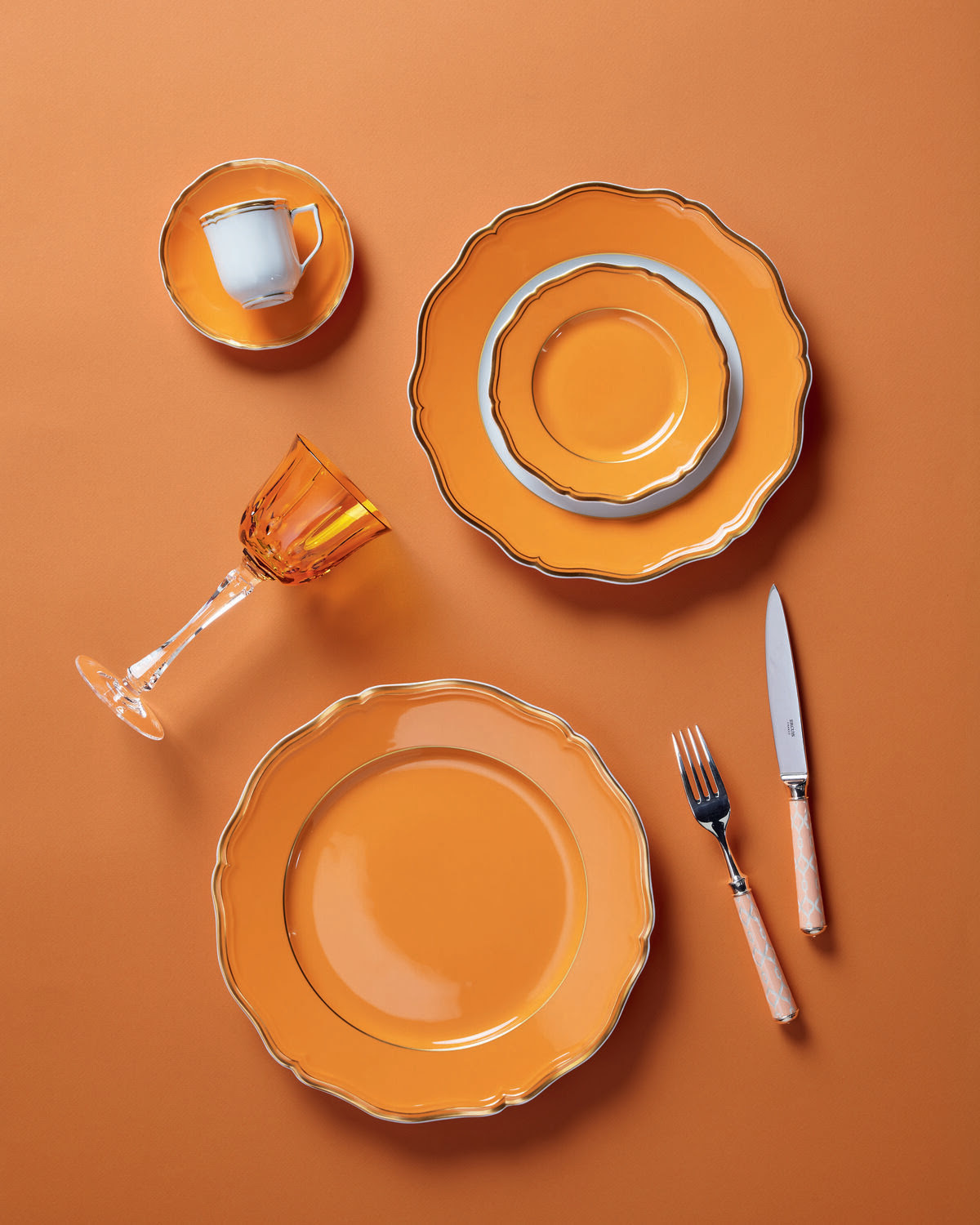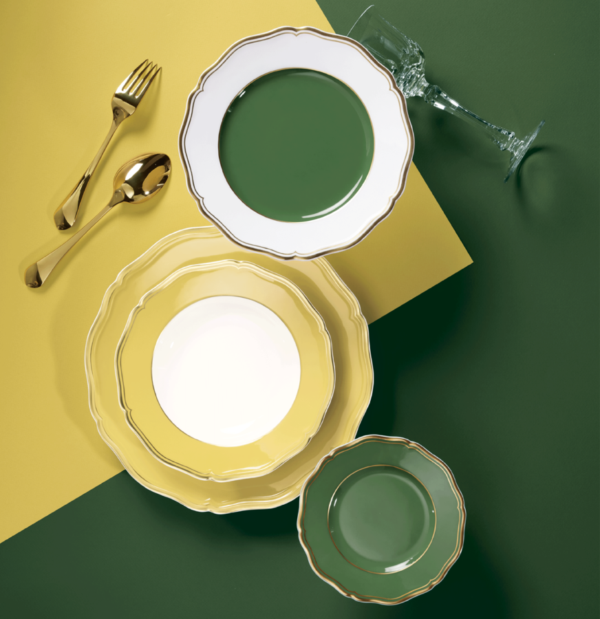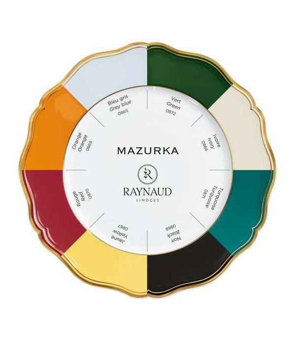 Direct heiress to the much favored gold classicline Polka collection, Mazurka modernizes the scalloped and gilded contour with its acidulous colors.